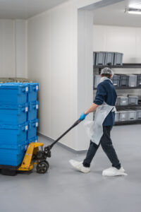 Notre flotte interne de véhicules assure une logistique agile et réactive, en lien direct avec votre organisation. Nous maîtrisons chaque étape : collecte des contenants sales, transport en bacs fermés, livraison dans vos créneaux horaires.